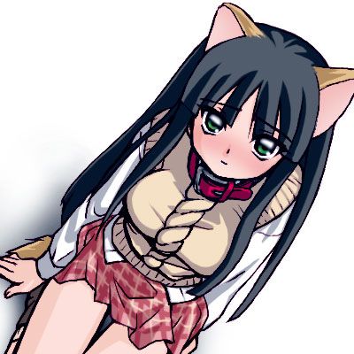 00s1girlanimal earsaran sweaterblack haircable knitcat earscollarfemale focuskneelinglong hairplaid clothesplaid skirtskirtsolosweatersweater vestvest
