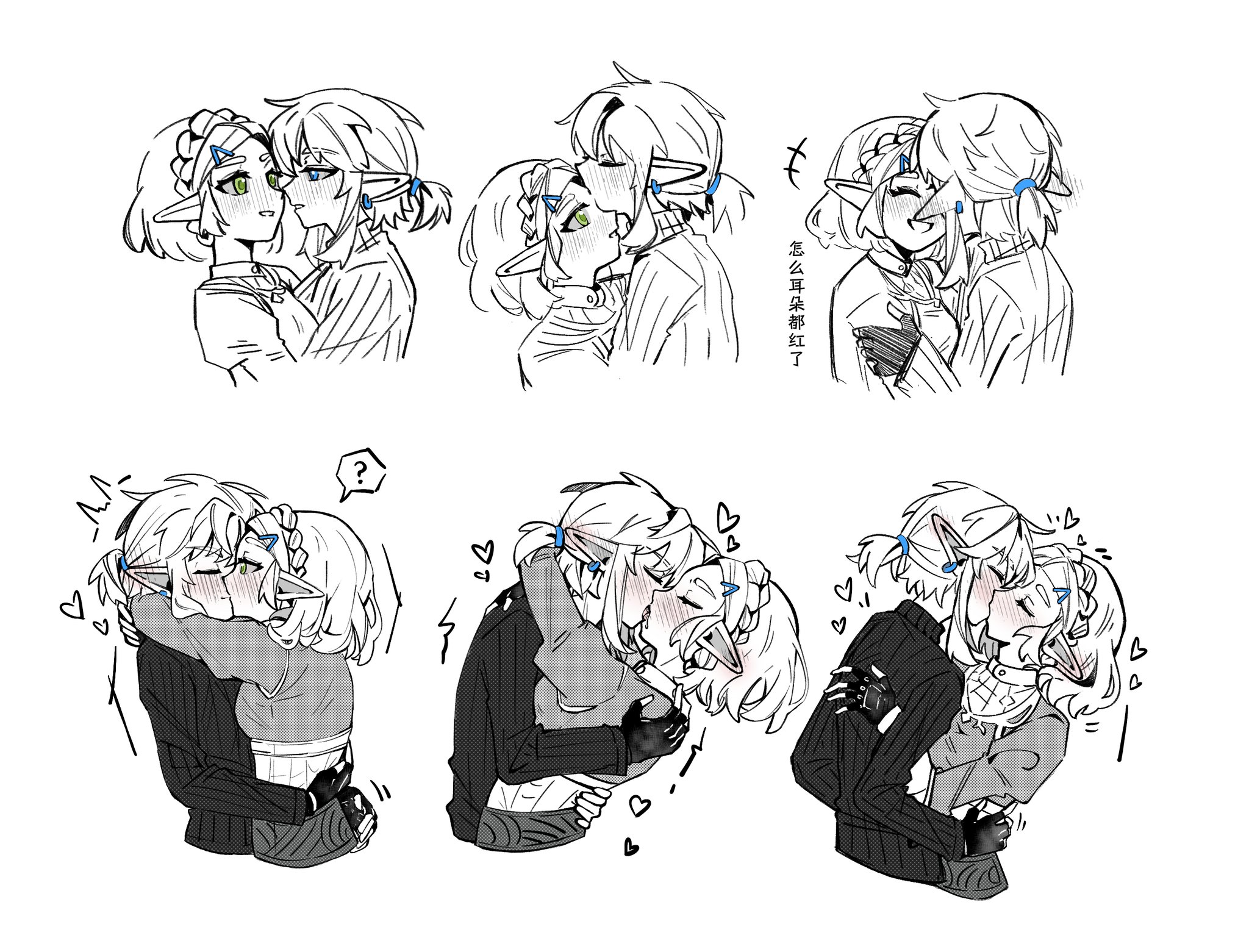 1boy1girlarms around neckblack glovesblue eyesblushbraidbreastsclosed mouthcouplecrown braidearringsfingerless glovesfrench kissglovesgreen eyesguzhi annaihair ornamenthair tiehairclipheterohugimminent kissjewelrykisskissing foreheadlimited palettelow ponytailmedium breastsparted bangsparted lipspointy earsponytailsalivasaliva trailsidelocksspot colorsweaterturtleneckturtleneck sweaterwhite background