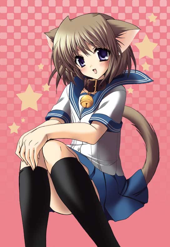 urotan, kousaka tamaki, to heart (series), to heart 2, 00s, copyright name, cowboy shot, school uniform, serafuku, simple background, solo, thighhighs, white background, white thighhighs, zettai ryouiki
