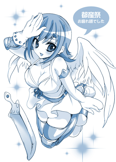 00s1girlangel wingsblushbreastscleavagedresselbow glovesfemale focusflyingfull bodygloveshair ornamenthaircliplarge breastssaluteshort hairsoloswordthighhighsweaponwingszettai ryouiki