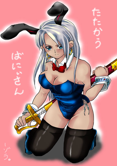 00sanimal earsbreastscleavagedark skinearringsfake animal earsjewelryplayboy bunnyrabbit earssoloswordthighhighsweapon
