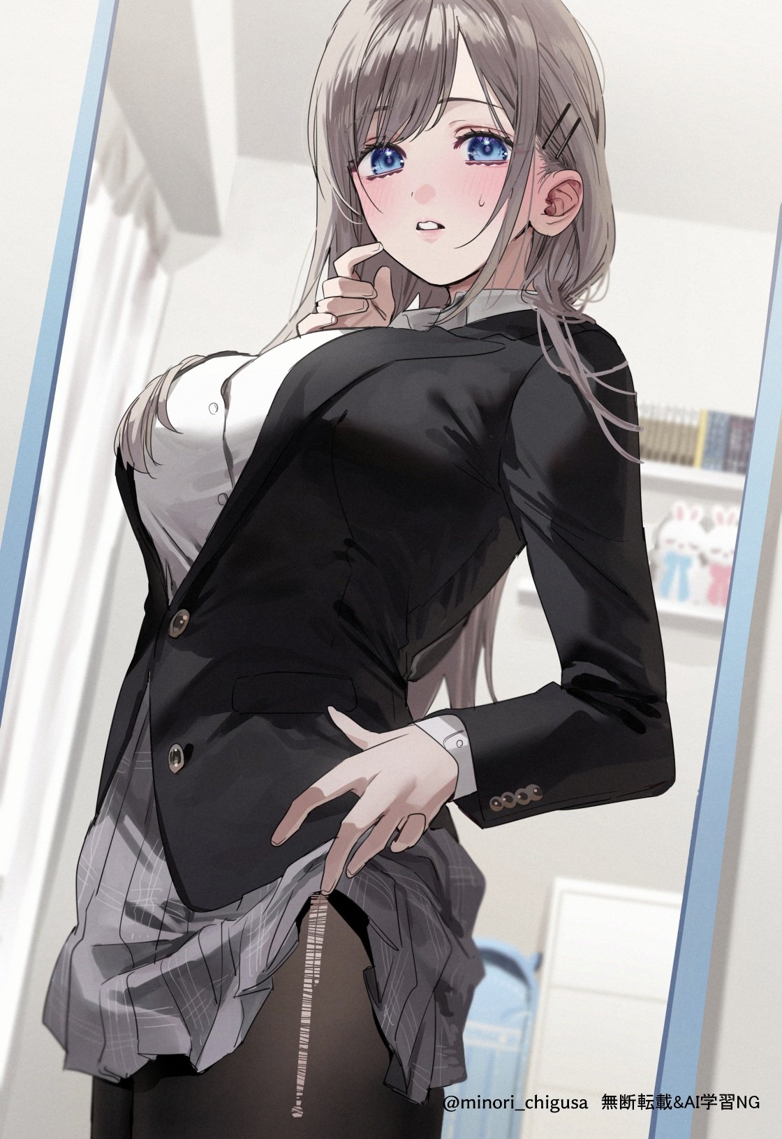 spammayoss, female sensei (blue archive), nagisa (blue archive), nagisa (swimsuit) (blue archive), sensei (blue archive), blue archive, highres, 2girls, black one-piece swimsuit, black pantyhose, black skirt, blush, breasts, brown eyes, brown hair, bulge, cleavage, closed mouth, futa with female, futanari, halo, heart, huge breasts, large testicles, long hair, long sleeves, looking at another, multiple girls, one-piece swimsuit, open mouth, pantyhose, pink halo, red eyes, shirt, skirt, smile, spoken heart, swimsuit, testicles, white shirt