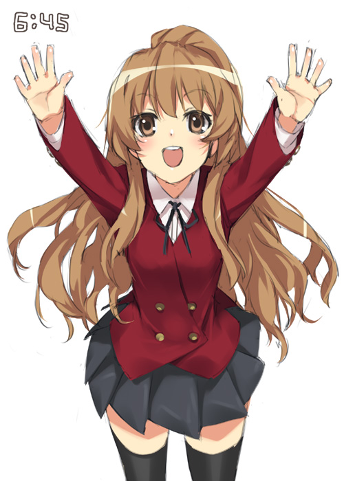 00s1girlblack thighhighsbrown hairbuttonsclockclockshowcowboy shotdigital clockdouble-breastedfemale focuslong hairopen mouthpleated skirtschool uniformserafukusimple backgroundskirtsmilesolothighhighswhite backgroundzettai ryouiki