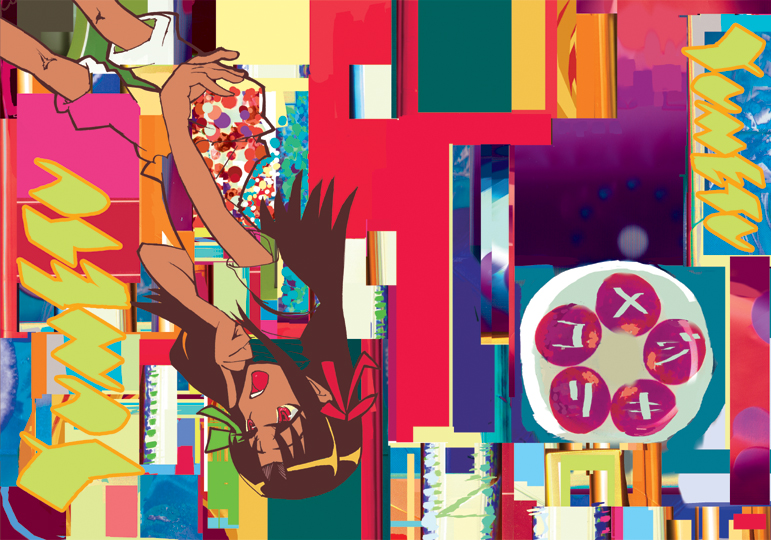 :o00s1girlabstractblushbrown eyesbrown hairdark skindark-skinned femalefemale focuslong hairopen mouthred eyessoloupside-downvery long hair