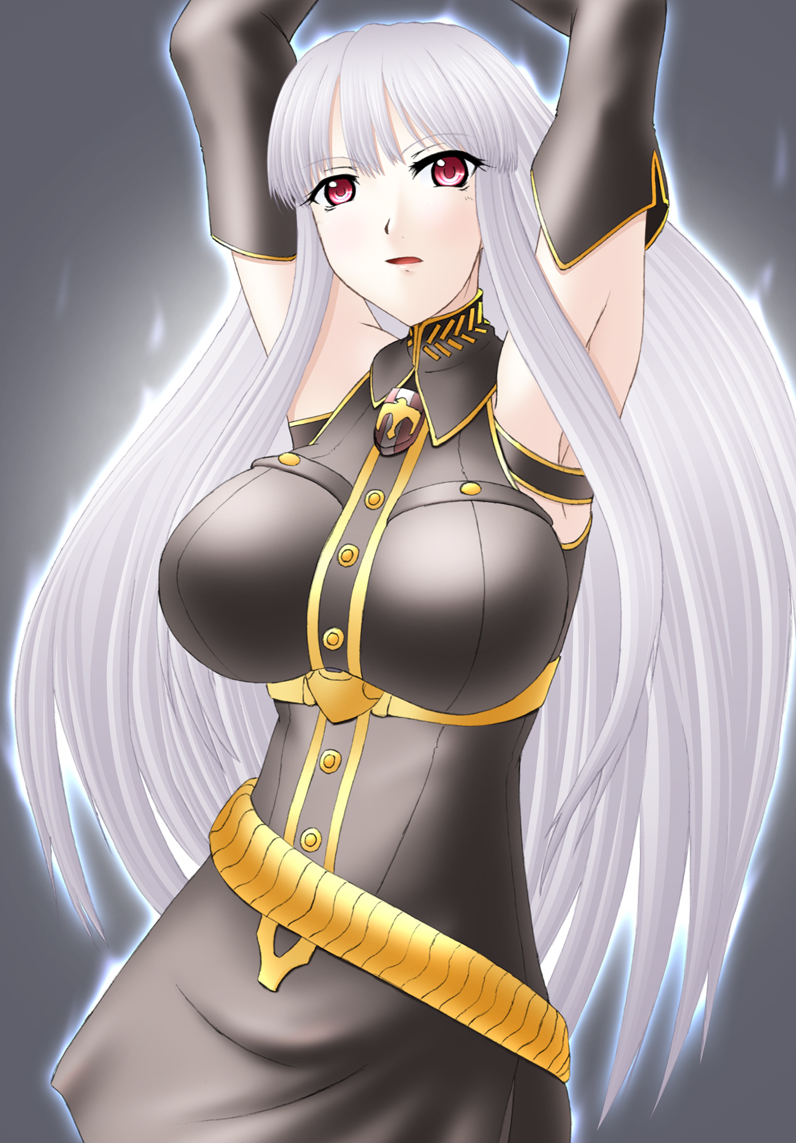 00s1girlarmpitsbare shouldersbeltbreastsfemale focuslarge breastslong hairmilitarymilitary uniformred eyessolowhite hair
