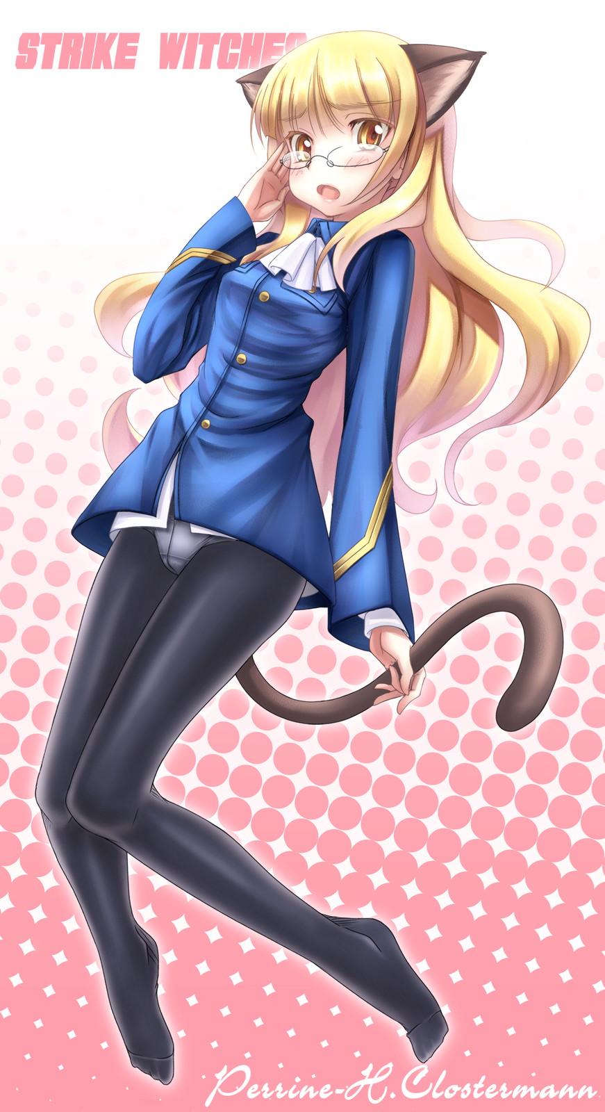 00s1girlanimal earsblonde hairblushcat earscat tailcrotch seamfeetfemale focusglasseslong hairpantiespanties under pantyhosepantyhosesolotailunderwearyellow eyes