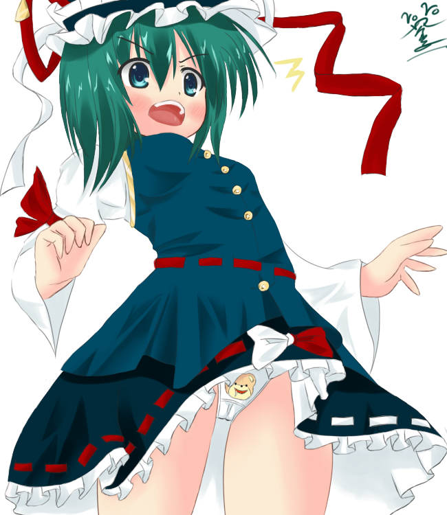 gumoyu, kagiyama hina, touhou, bad id, bad pixiv id, 1girl, aqua hair, female focus, front ponytail, green hair, long hair, ribbon, skirt hold, solo