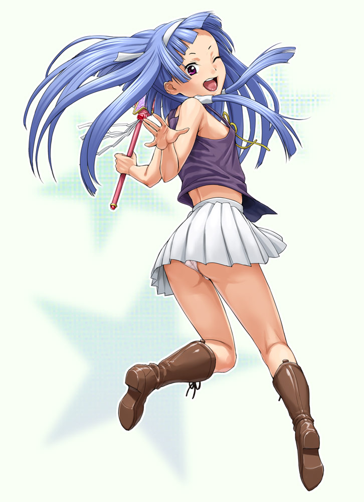 00s1girlblue hairblunt bangsbootsfemale focusheadbandlong hairone eye closedpantiespantyshotpink pantiespleated skirtpurple eyesskirtsolounderwearwandwhite skirtwink