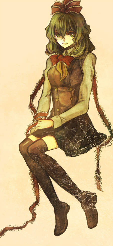 higi (rodriguez), tohsaka rin, fate/stay night, fate (series), 00s, 1girl, black skirt, black thighhighs, blue eyes, brown hair, feet, female focus, hair ribbon, homurabara academy school uniform, legs, long legs, long skirt, ribbon, school uniform, serafuku, skirt, solo, thighhighs, two side up, vest