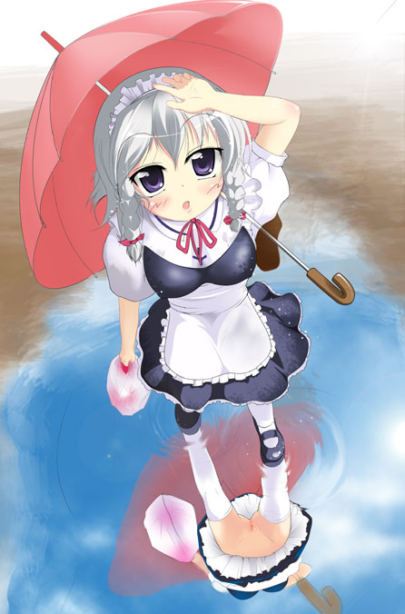1girlapronbagblushbraidbreastscarryingcleft of venuscovered erect nipplesdot nosefemale focusfrom abovegrey hairlarge breastslooking upmaidmaid apronmaid headdressmary janesno pantiesoutdoorsplastic bagpuddlepurple eyespussyrainreflectionreflective waterribbonshoesshort hairside braidsolothighhighstwin braidstwintailsumbrellauncensoredwater