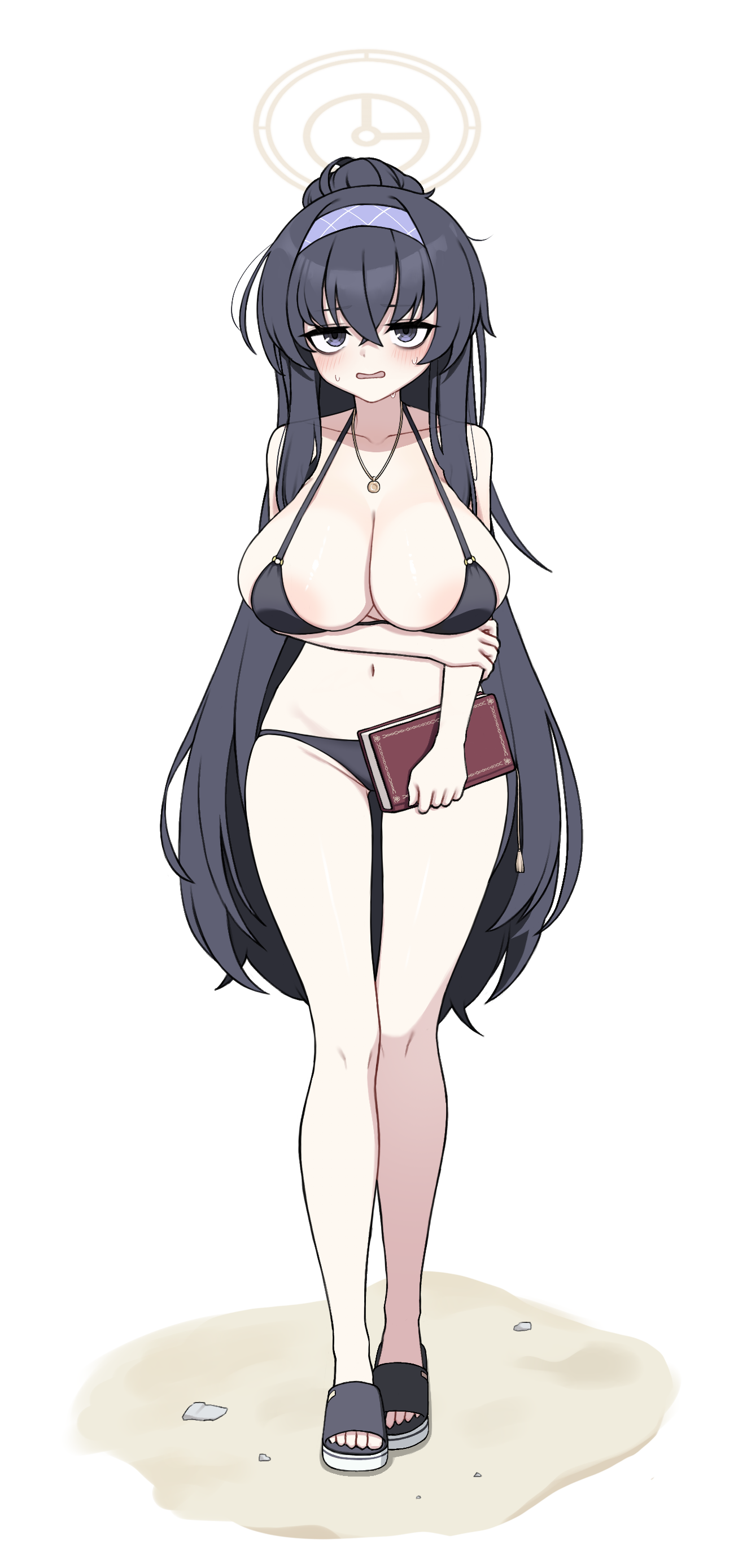 norippe (user zgsf8872), doodle sensei (blue archive), sensei (blue archive), ui (blue archive), blue archive, commentary request, highres, translation request, 1boy, 1girl, bags under eyes, black hair, blue background, blue eyes, blue hairband, blush, brown jacket, grey shirt, hair between eyes, hairband, halo, holding, jacket, long hair, looking at viewer, off shoulder, peeking out, sailor collar, shirt, simple background, solo focus, upper body, very long hair, white sailor collar