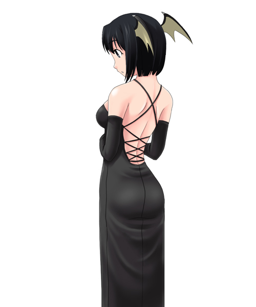 00s1girlbackbat wingsblack eyesblack hairdresselbow glovesfemale focusfrom behindgloveshead wingsshort hairsolowings