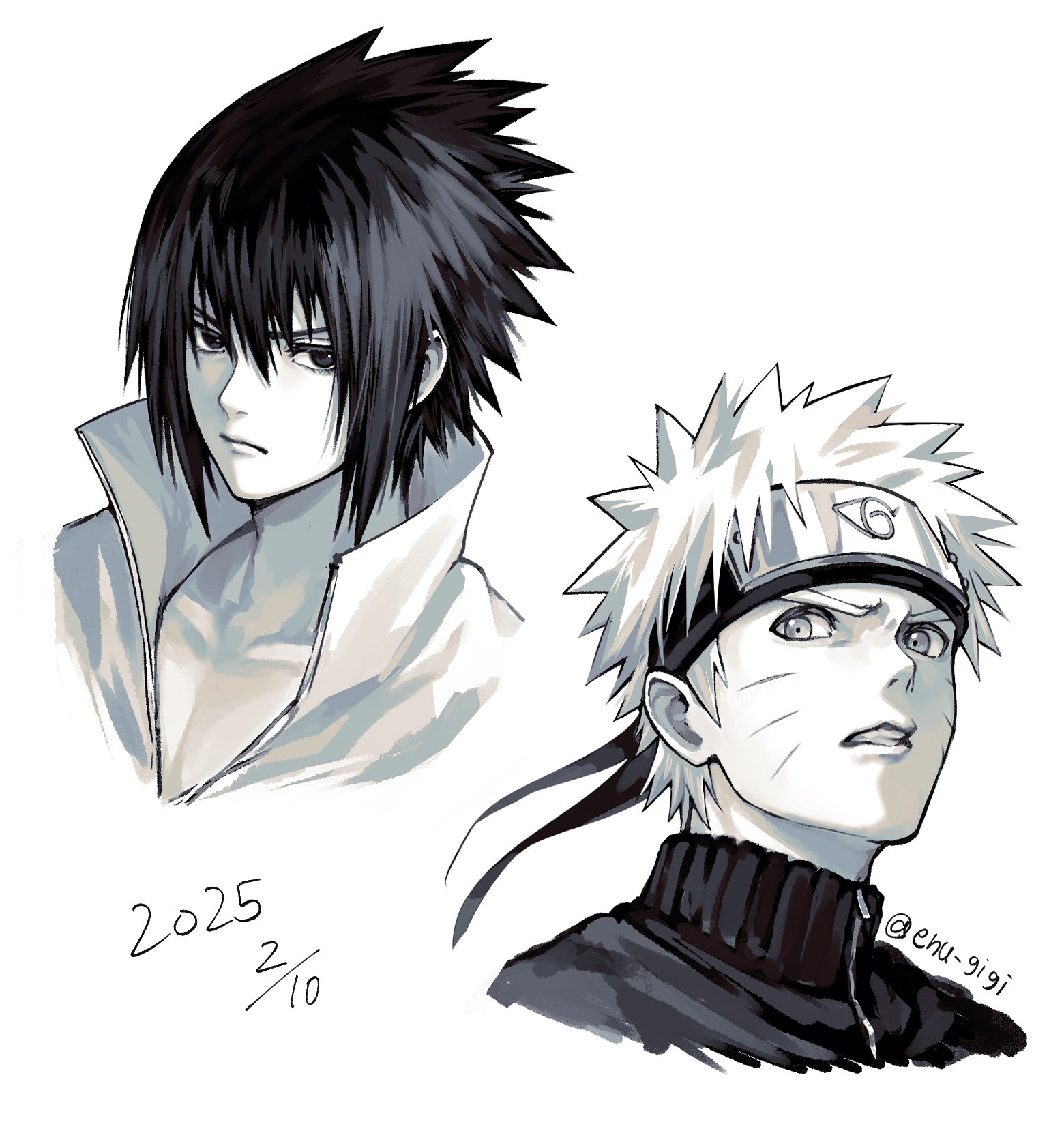 2boysclosed mouthcropped shouldersdatedenu gigifacial markforehead protectorgreyscalekonohagakure symbolmale focusmonochromemultiple boysshort hairsimple backgroundtwitter usernamewhisker markingswhite backgroundzipperzipper pull tab