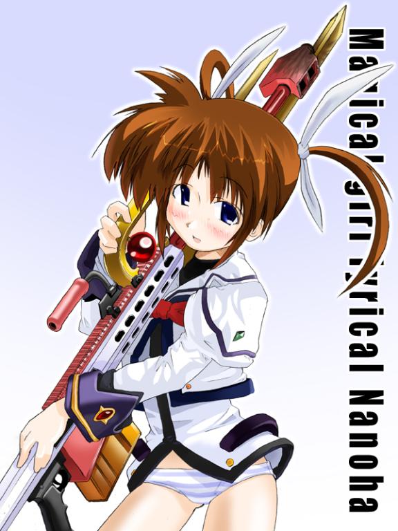 1girlalternate weaponblushbottomlessfemale focusgunno pantspantiesparodysolotwintailsunderwearweapon