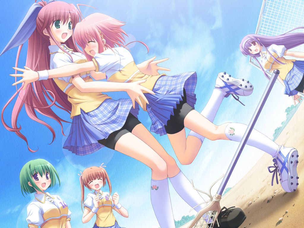 5girlsbike shortsblue eyesdutch anglegreen eyesgreen hairlacrosselong hairmultiple girlspink hairpurple eyespurple hairshort hairtwintails