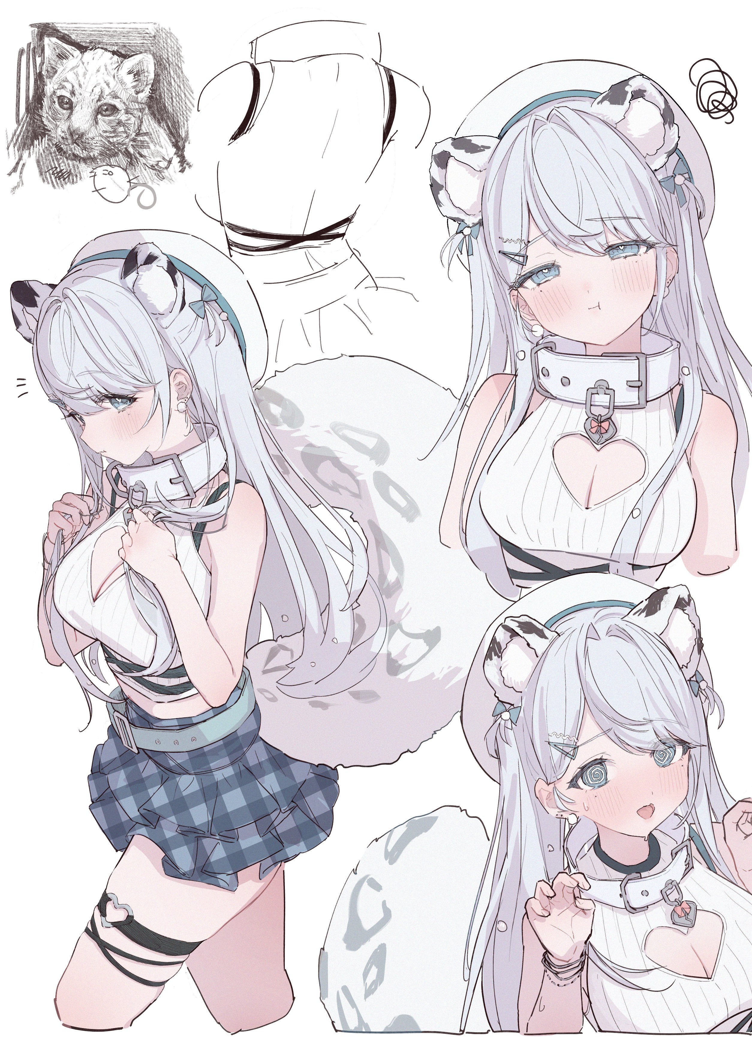 :t1boy1girlbare armsbare shouldersbeltblue eyesblue skirtblushbra strapbreastsclaw posecleavagecleavage cutoutclothing cutoutcollarcrop topcropped legsextra earshair ornamenthaircliphands uphatheartheart cutoutheart in eyeheart o-ringhigh-waist skirtholdingholding own hairlarge breastslong hairlooking at viewerloose beltmidriffmolemole under eyemultiple viewso-ringopen mouthplaid clothesplaid skirtpoutribbed shirtshirtskirtsleevelesssleeveless shirtsmilesnow leopard earssnow leopard girlsnow leopard tailsquigglesweatsymbol in eyetail raisedthigh strapthighsunmoving patternvirtual youtuberwhite collarwhite hairwhite hatwhite shirt