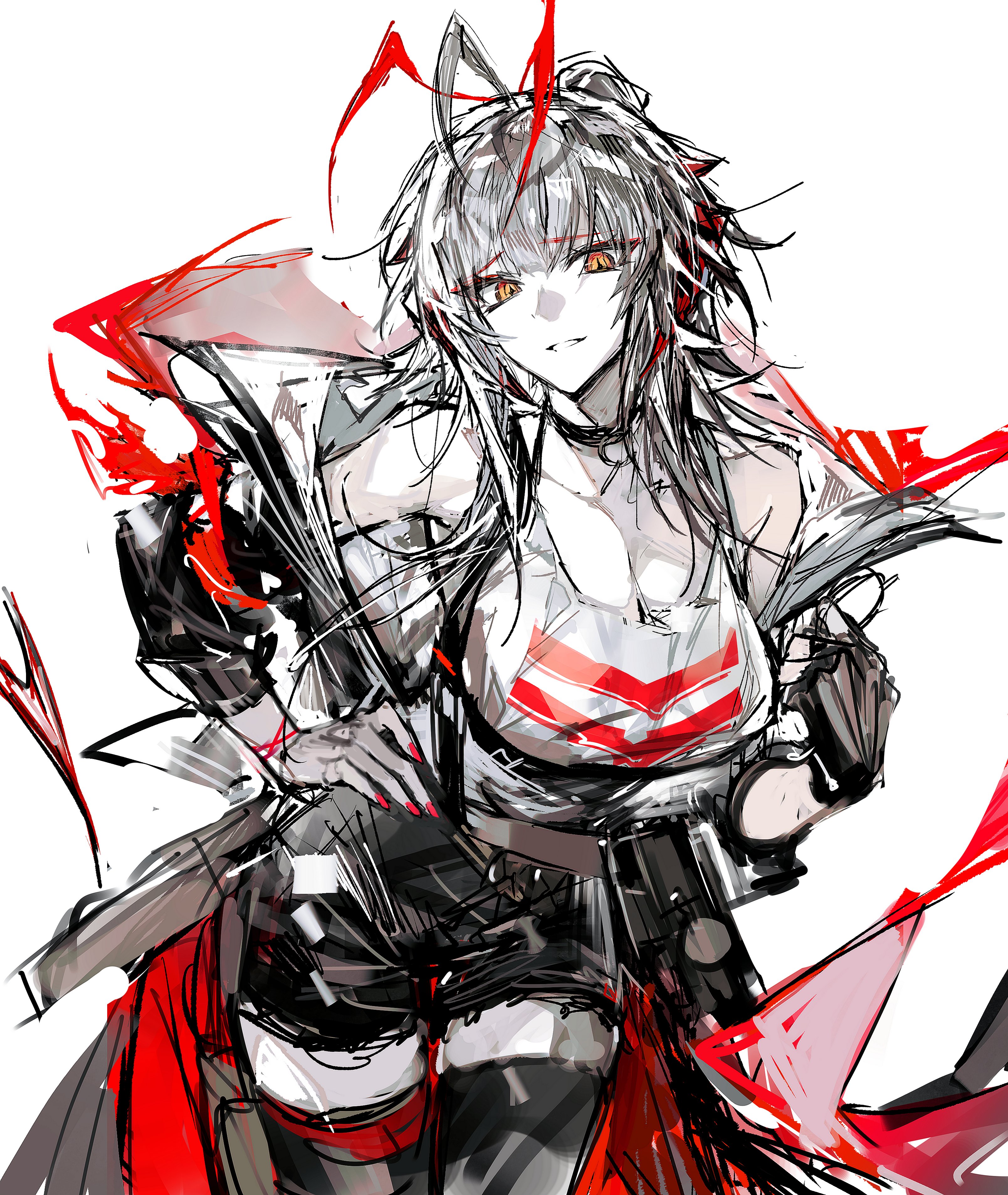 nantekottawo!!, golden bough (limbus company), yuri (project moon), limbus company, project moon, commentary, highres, symbol-only commentary, 1girl, apple, arm up, black jacket, black pants, black shoes, crying, crying with eyes open, floating, food, fruit, full body, gauze, gauze over eye, golden apple, jacket, light particles, looking up, pants, parted lips, shoes, solo, tears
