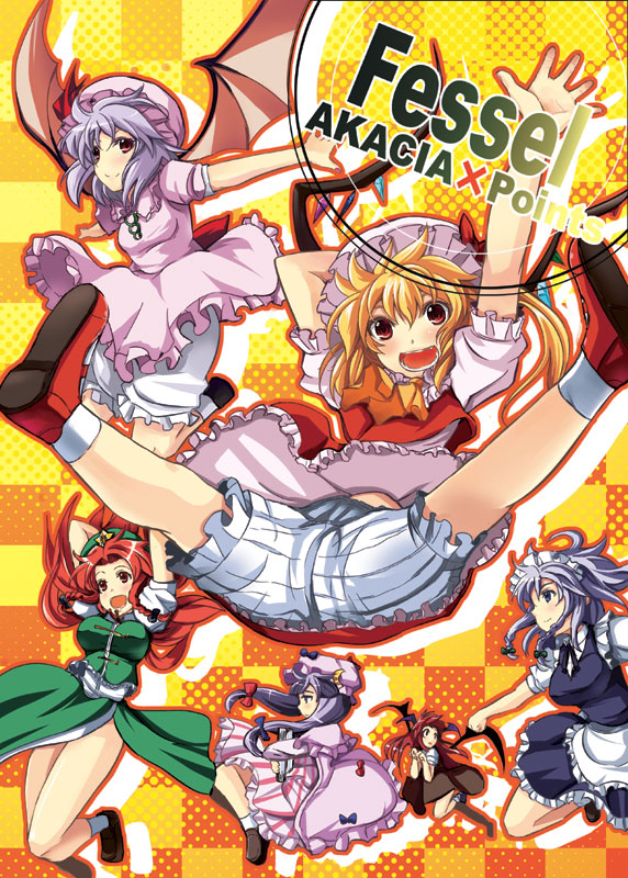 :d6+girlsbat wingsbloomersbrown haircrescent hat ornamentfemale focushathat ornamentlooking at viewermob capmultiple girlsopen mouthpuffy short sleevespuffy sleevesred eyesred skirtshort hairshort sleevesskirtsmilespread legsunderwearupskirtwhite bloomerswings