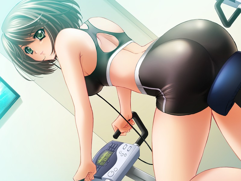 00s1girlassbike shortsbrown hairdutch angleexercise bikeexercisingfemale focusgreen eyesgreen hairlooking backmatching hair/eyesshort hairshortssolospandexsports brawachi norika