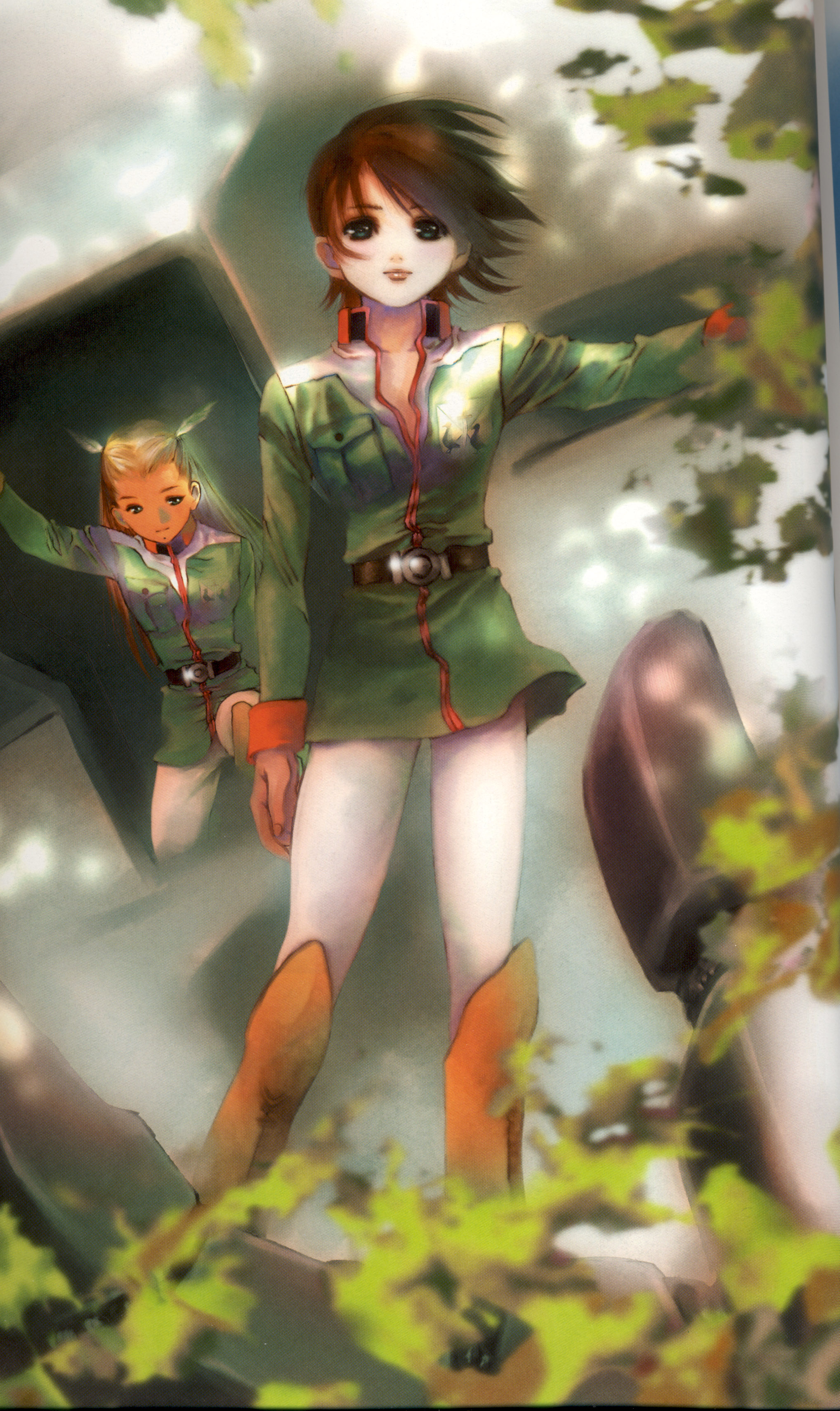 yagisaka seto, jochuu-san, original, lowres, 1girl, female focus, green hair, lace, lace-trimmed thighhighs, lace trim, oekaki, solo, thighhighs