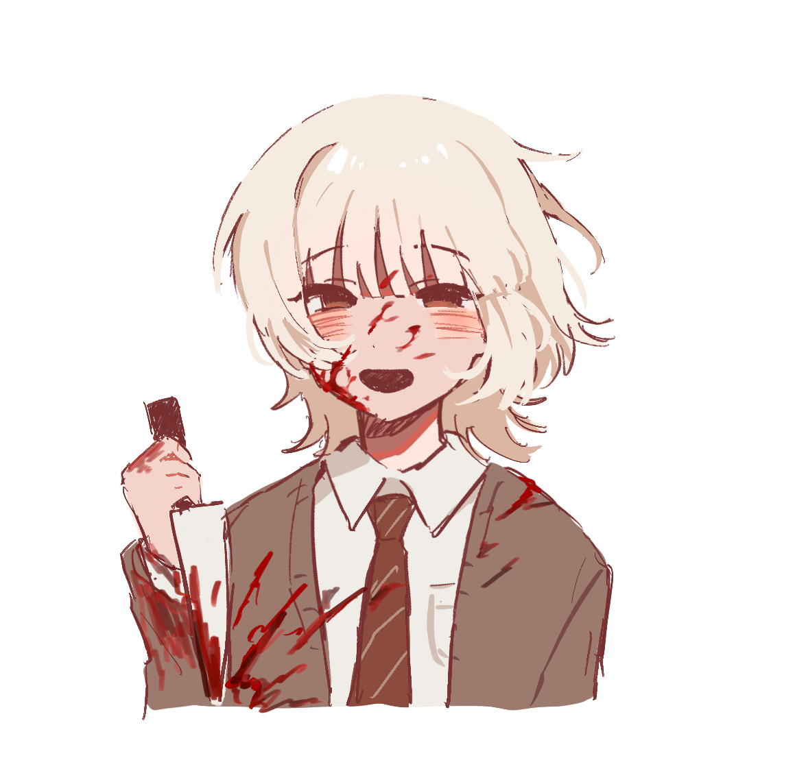 hatono chihiro, mizuo haruichi, takami kouki, futsuu no keion-bu, small pupils, commentary request, highres, +++, 1girl, 2boys, :d, :|, anger vein, angry, blazer, blush, closed mouth, collared shirt, furrowed brow, half-closed eyes, jacket, konoyarou, lapels, laughing, monochrome, multiple boys, neck ribbon, necktie, notched lapels, open mouth, orange theme, raised inner eyebrows, ribbon, rivalry, scene reference, school uniform, shirt, short hair, smile, squiggle, teeth, upper body, upper teeth only