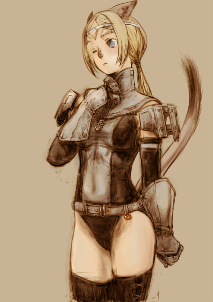 00s1girlanimal earsarmorblonde hairblue eyesbreastscircletfemale focusgloveslong hairsolotailthighhighs