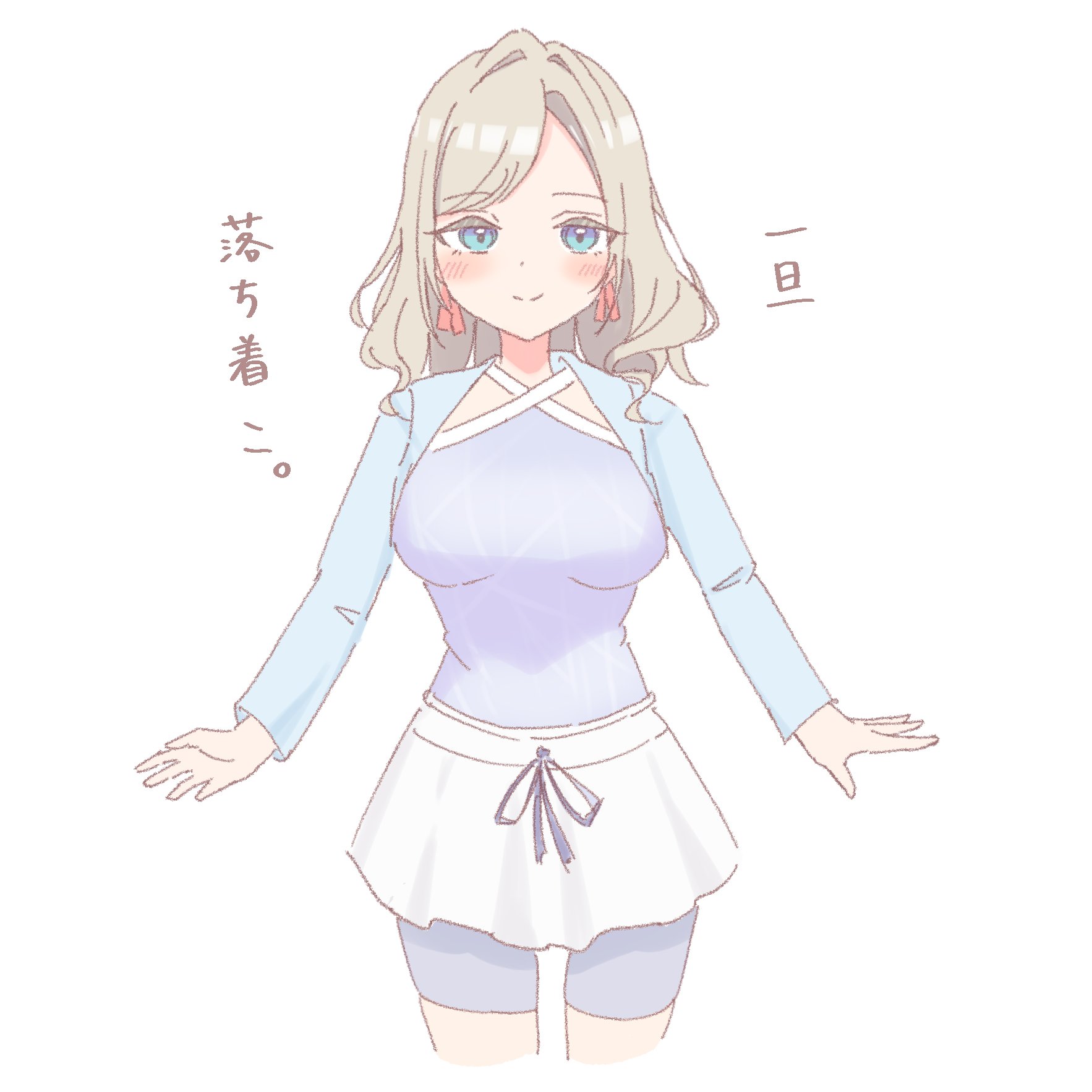 1girlbike shortsbike shorts under skirtblue eyesblue jacketbreastsclosed mouthcriss-cross haltergrey hairhair intakeshair ribbonhalterneckjacketlarge breastslong sleeveslooking at viewerminiskirtofficial alternate costumeopen clothesopen jacketpink ribbonpurple shirtpurple shortsribbonshirtshortsshorts under skirtside partskirtsleevelesssleeveless shirtsmilesolosplit mouthvirtual youtuberwavy hairwhite skirt