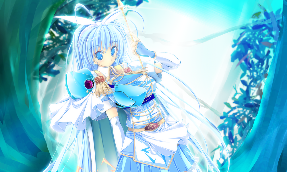 arrow (projectile)blue eyesblue hairelbow glovesfantasyfingerless glovesgloveshairbandlong hairsolo