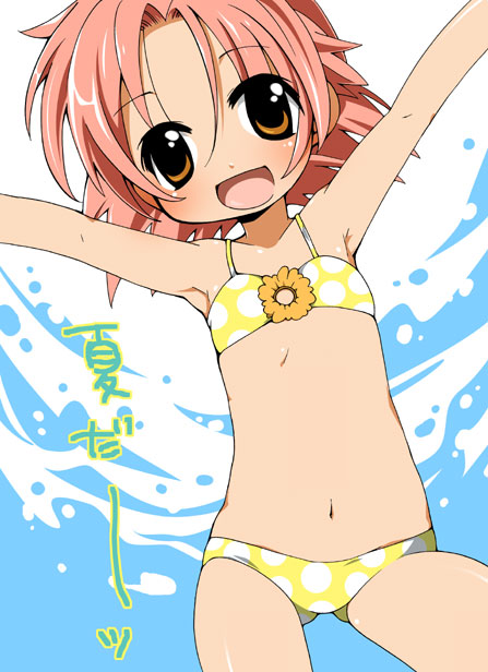 00sarmpitsbikiniflat chestpink hairpolka dotpolka dot bikinipolka dot swimsuitshort hairsoloswimsuityellow bikini