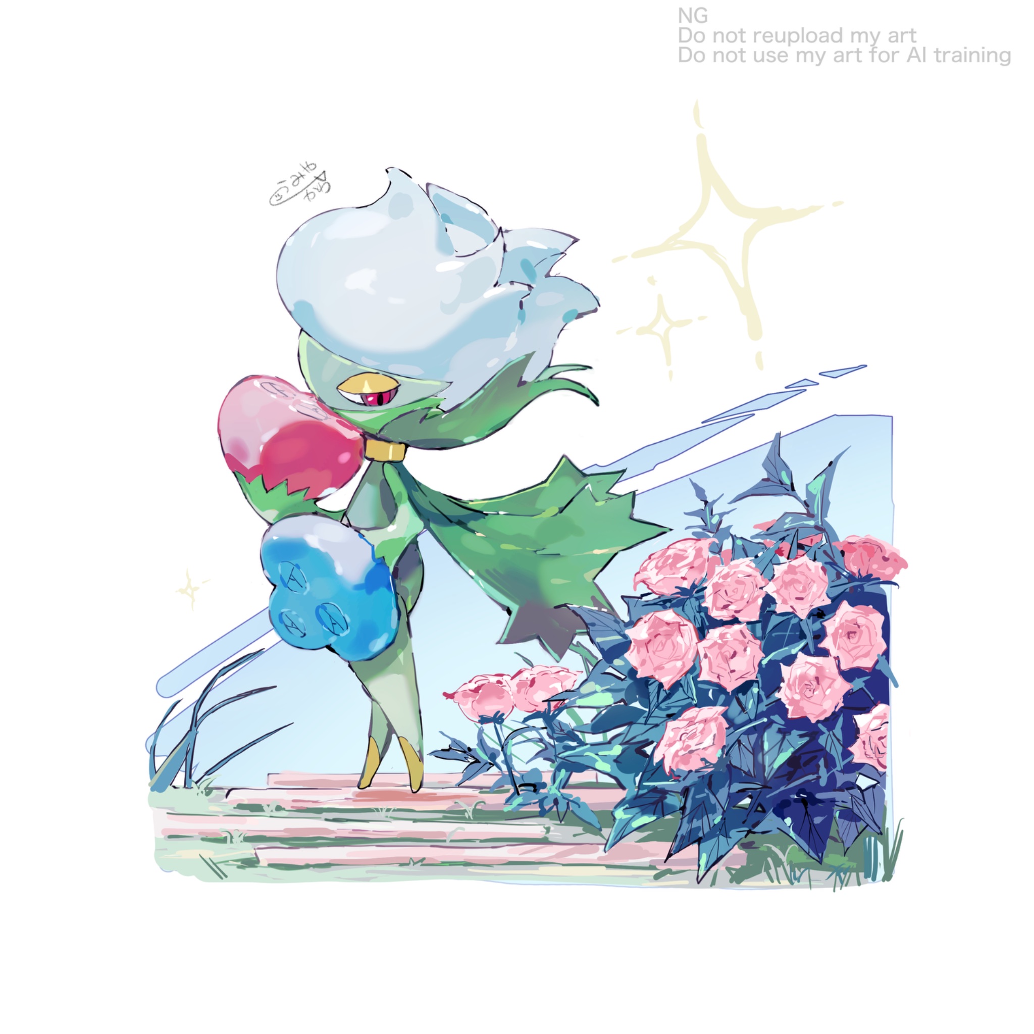 blue flowerblue rosecolored skinflowerfull bodygen 4 pokemongreen skinpokemon (creature)pokemon focusred eyesred flowerred roserosesolo
