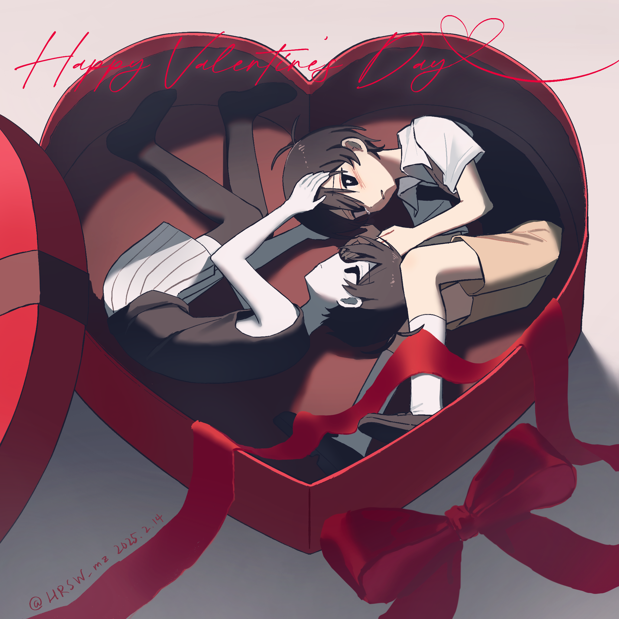 2boysblack shoesblack socksblack sweater vestblack tank topbowboxbrown shortsclosed mouthcollared shirtcolored skindateddual personahappy valentineheart-shaped boxlyingmale focusmultiple boyson sideparted lipsred bowred ribbonribbonshirtshoesshort sleevesshortssocksstriped clothesstriped shortssweater vesttank toptwitter usernamevertical-striped clothesvertical-striped shortswhite shirtwhite shortswhite skinwhite socks