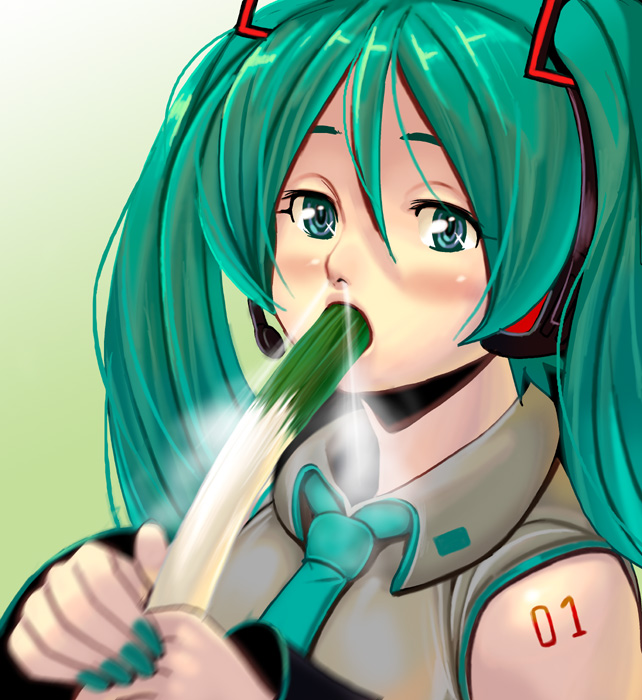 1girlaqua eyesaqua hairaqua nailsblue eyesbreathdetached sleevesfemale focusleekjobmotion blurnail polishnecktiesexually suggestivesolospring onionsteamtattootwintails
