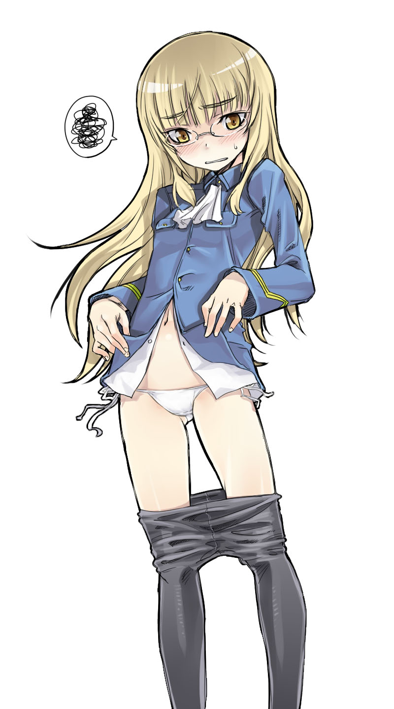 00s1girlblonde hairblushbrown eyesclothes pullcrotch seamfemale focusflat chestglasseslong hairpantiespantyhosepantyhose pullside-tie pantiessimple backgroundsolounderwearyellow eyes