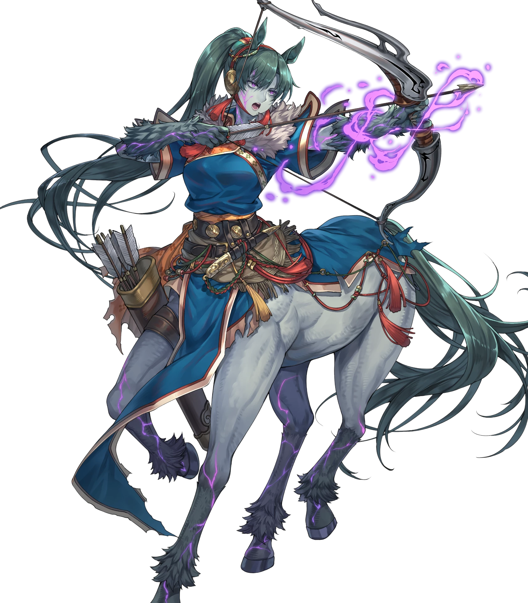 1girlalternate eye coloranimal earsattackbootsbow (weapon)brown glovescentaurcorruptiondark skindark-skinned femaledrawing bowfingerless glovesglovesgreen hairholdingholding bow (weapon)holding weaponhorse earshorse girlpelvic curtainponytailpurple eyesquiversolotaurtransformationweapon