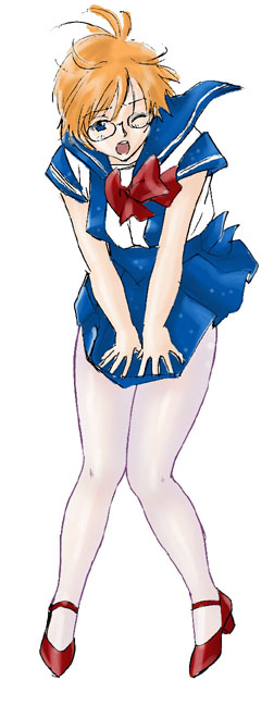 1girlblue eyesfemale focusglassesorange hairpantyhoseschool uniformserafukusolowhite pantyhose
