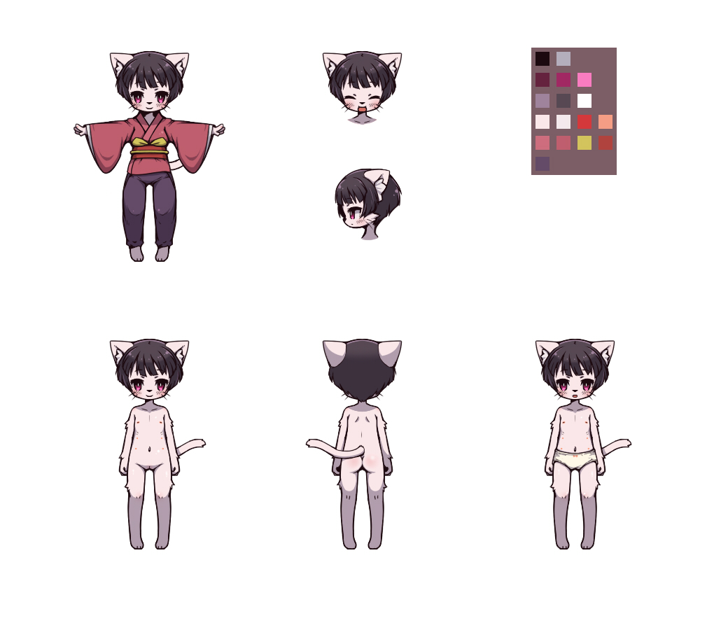 black hairfelineFlag for Deletionflat chestedfurryjapanese clothesnipplesnudepantiespurple eyespussyshort hair