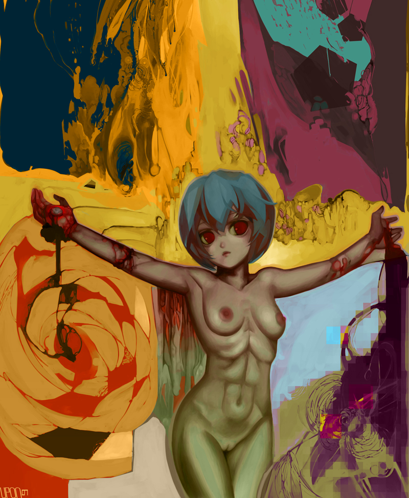 1girlabsbloodbreastscompletely nudecowboy shotcrucifixionfemale focusmedium breastsmuscularnail (hardware)nipplesnudepussyskinnysolotonedtoned female