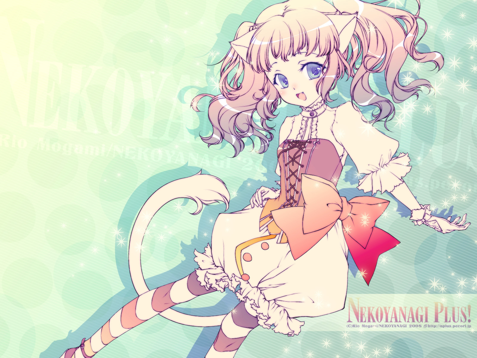 1girlanimal earsblue eyescat earscat tailchildfangfemale focusgloveslong hairpantyhosepink hairsolostriped clothesstriped pantyhosetailtwintails