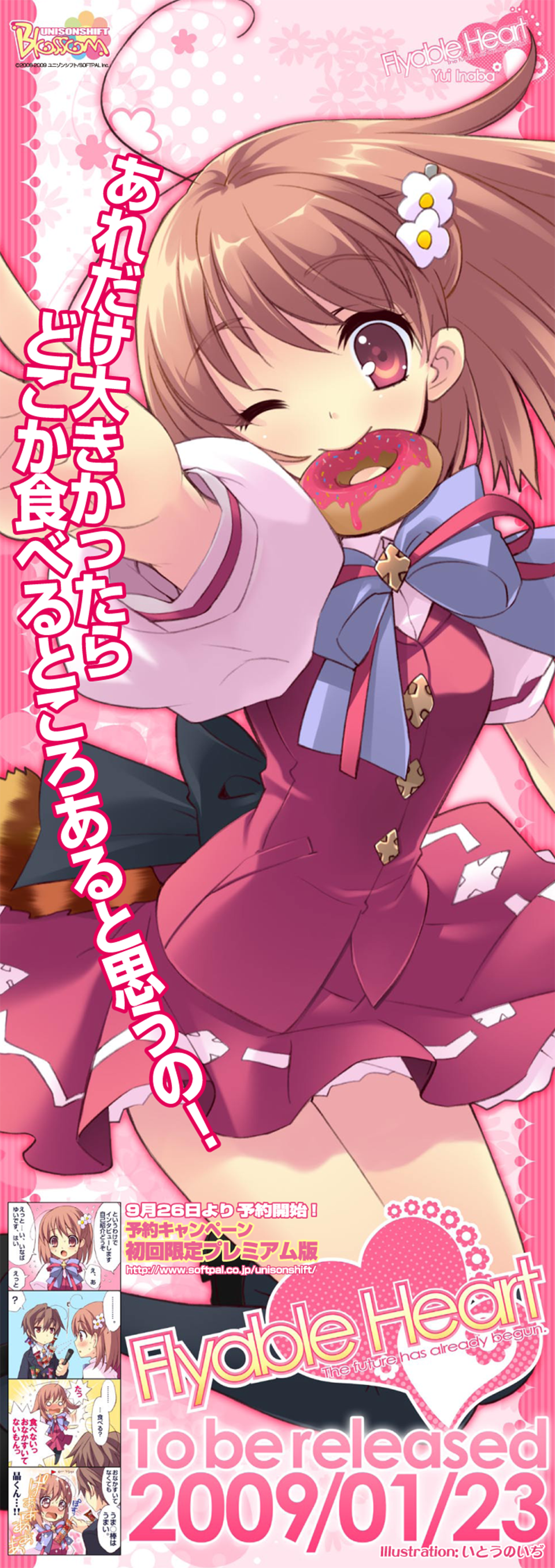 4komaartist namebrown haircharacter namecomiccopyright namedonutflowerfoodhair flowerhair ornamenthairclipone eye closedschool uniformshort hairstick posterwink