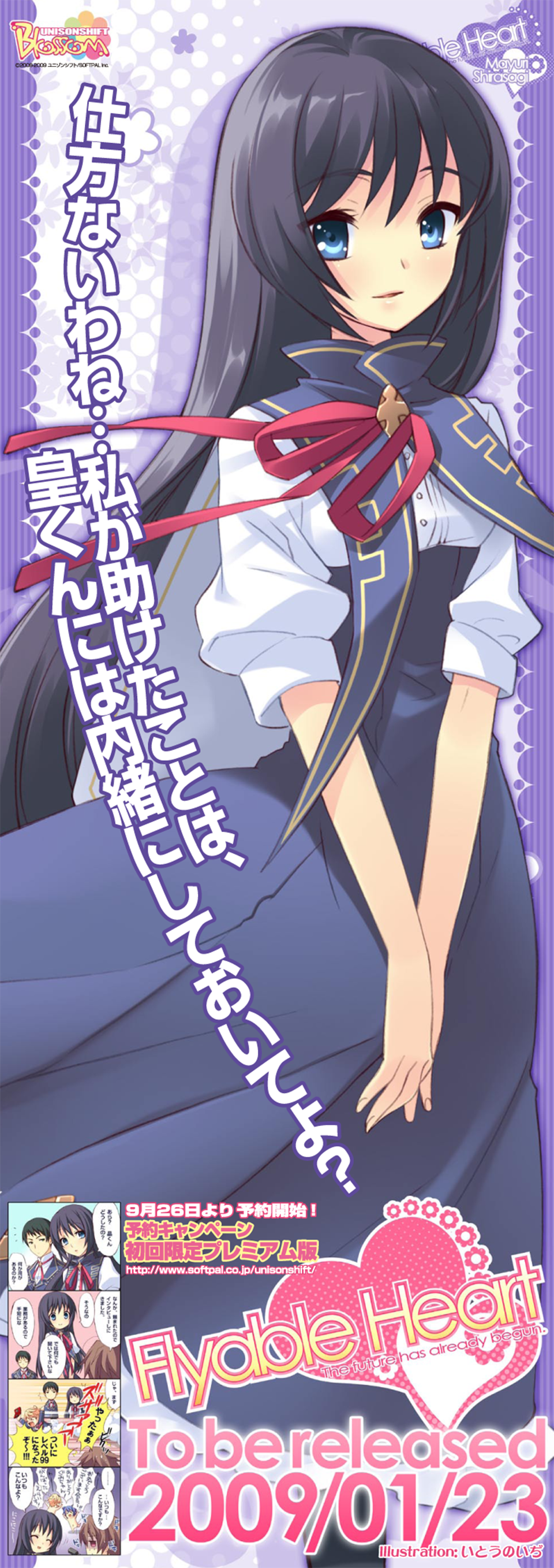 1girl4komaartist nameblack hairblue eyescharacter namecomiccopyright namefemale focuslong hairschool uniformsolostick poster