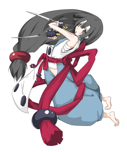 1girlbarefootfemale focusfull bodyjapanese clotheslong hairlow-tied long hairsimple backgroundsolowhite background