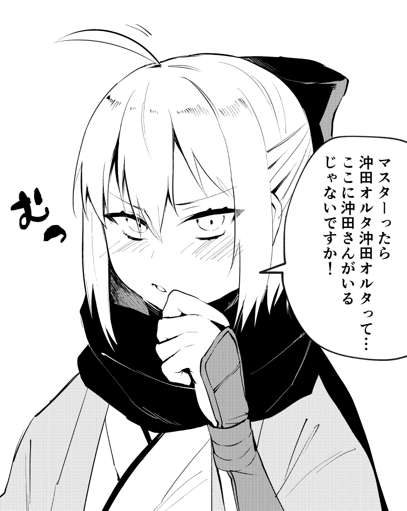 1girlahogeblack bowblushbowgreyscalehair bowhaorijapanese clotheslooking at viewermonochromeshort hairsolospeech bubbleupper body