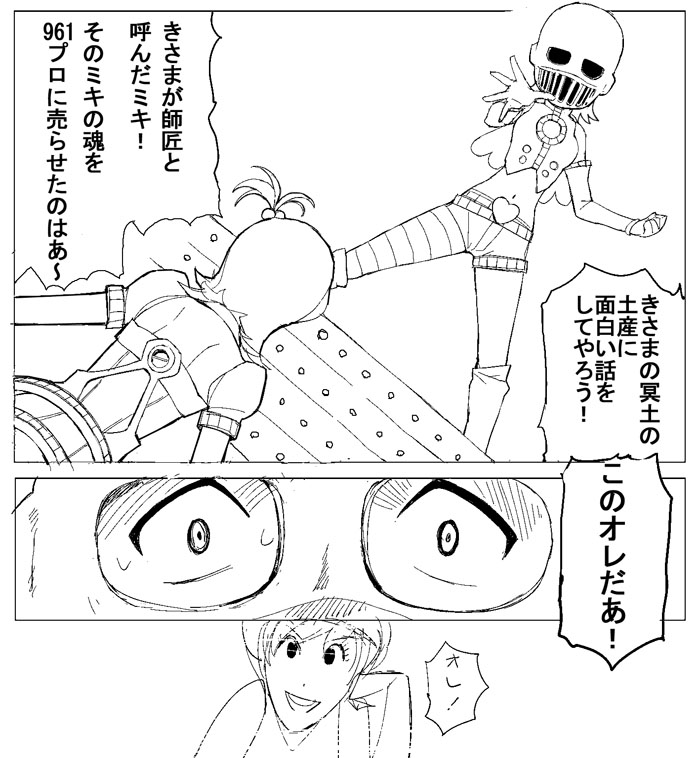 hmayme4238, flame reaver of the deepest dark, phainon (honkai: star rail), honkai: star rail, honkai (series), highres, 2boys, antenna hair, armor, back-to-back, broken skin, cape, ceremonial blade (honkai: star rail), closed eyes, coreflame (honkai: star rail), covered mouth, dual persona, fingernails, gauntlets, greyscale, hair between eyes, hand up, jacket, long sleeves, looking at another, looking back, male focus, monochrome, multiple boys, open mouth, short hair, shoulder armor, smile, sun symbol, teeth, two-tone background, upper body
