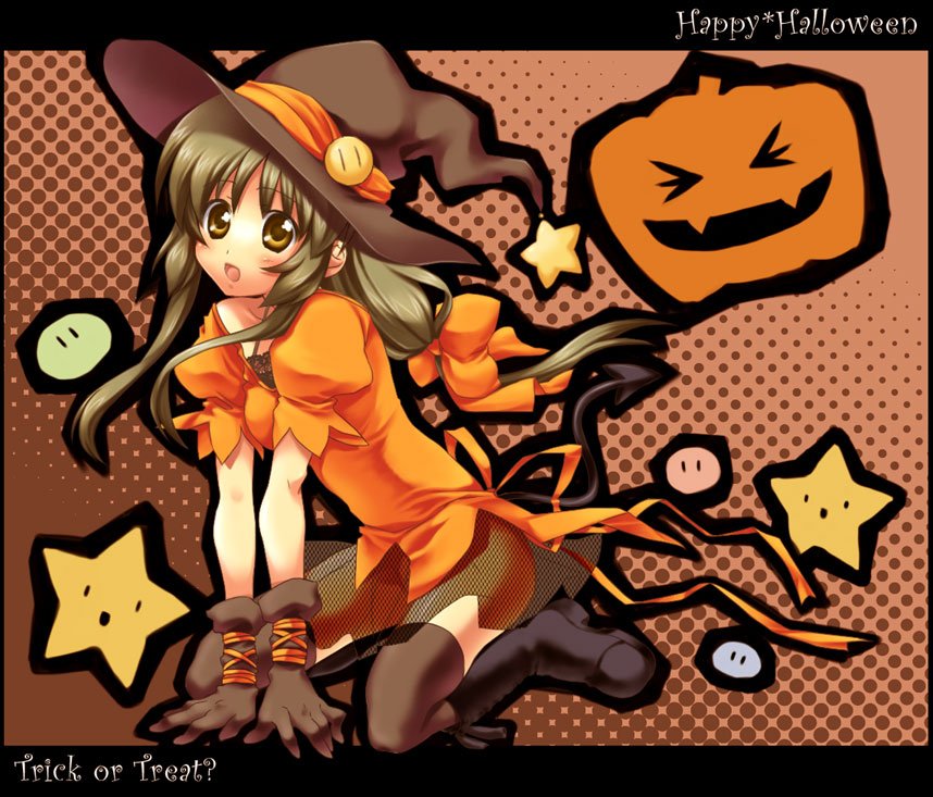 00s1girldangofemale focusfoodgreen hairhalloweenhappy halloweenjack-o'-lanternlong hairlow-tied long hairpumpkinsolotrick or treatvery long hairwagashi