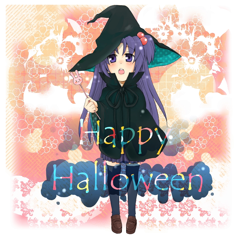 00s1girlblue eyesblue hairfemale focushair bobbleshair ornamenthalloweenhappy halloweenhatlong hairmatching hair/eyessolothighhighstwo side upvery long hairwitch hat
