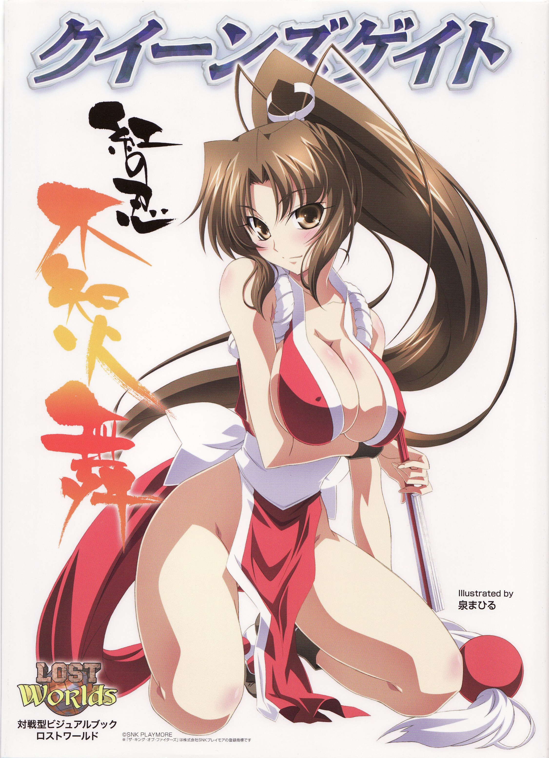 1girlblushbreastsbrown haircleavagefemale focusjapanese clotheslarge breastslong hairpelvic curtainponytailrevealing clothessolo