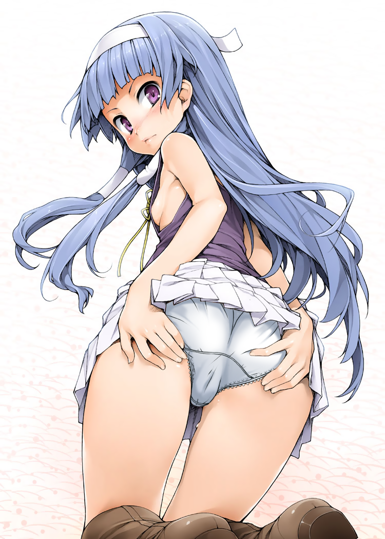 00s1girlassblue hairblunt bangsblushbootsbreastsbrown bootscameltoefemale focusfrom behindhair tubeshairbandheadbandkneelinglong hairlooking backnipple slipnipplesno brapantiespleated skirtpurple eyessideboobskirtsmall breastssolothighstrefoilunderwearvery long hairwhite pantieswhite skirt