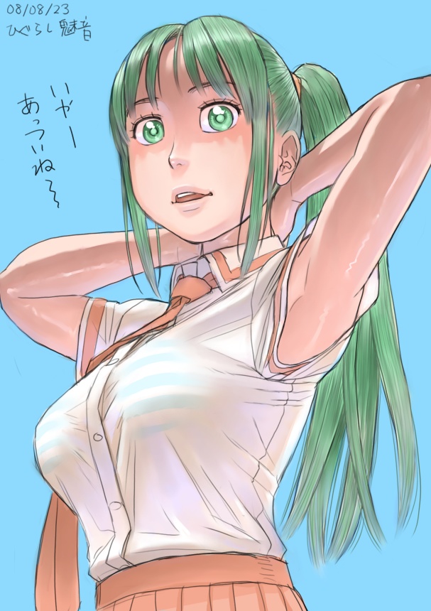 00s1girlarmpitsbrabreastsfemale focusgreen eyeslarge breastsnecktieponytailsee-through clothesshirtsolostriped brastriped clothestaut clothestaut shirtunderwear