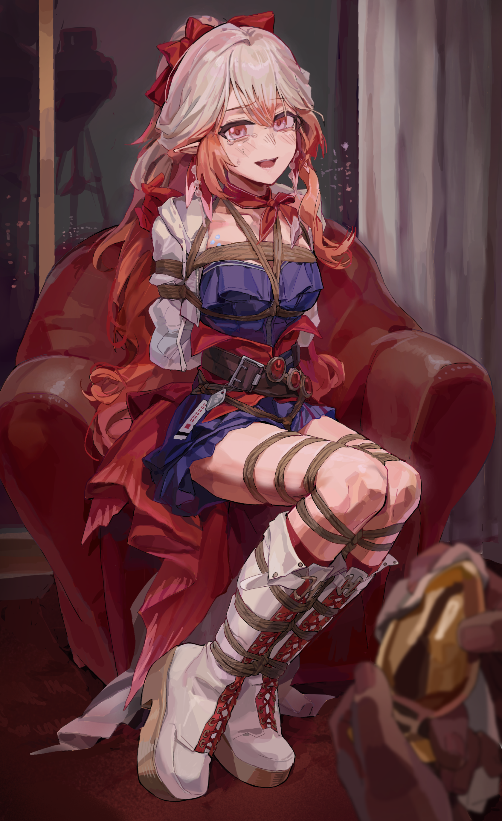 hyperrxgue, takamaki anne, atlus, persona, persona 5, 1girl, artist name, ass, bikini, blonde hair, blue bikini, blue eyes, breasts, female focus, floral print, floral print bikini, large breasts, looking at viewer, looking back, print bikini, side-tie bikini bottom, solo, swimsuit, thighs, twintails, wavy hair