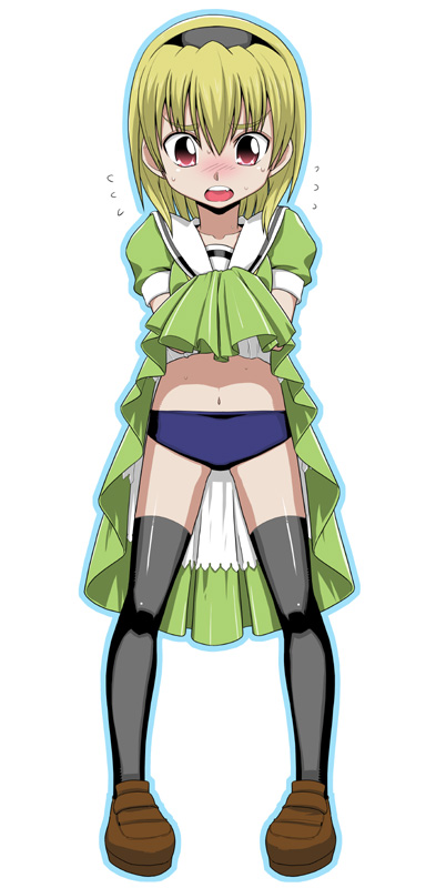 00sblonde hairblushburumaclothes liftdressdress lifthairbandlolinavelred eyessailor dressshort hairsolothighhighs